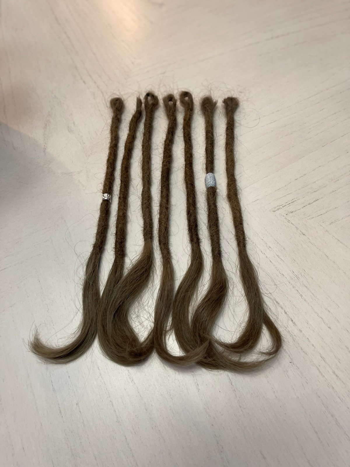 These are custom made from 100% Remy human hair. I purchased a custom set from a local dread shop but did not end up using these as I prefer DE and not SE. These 7 dreads are unused and new!