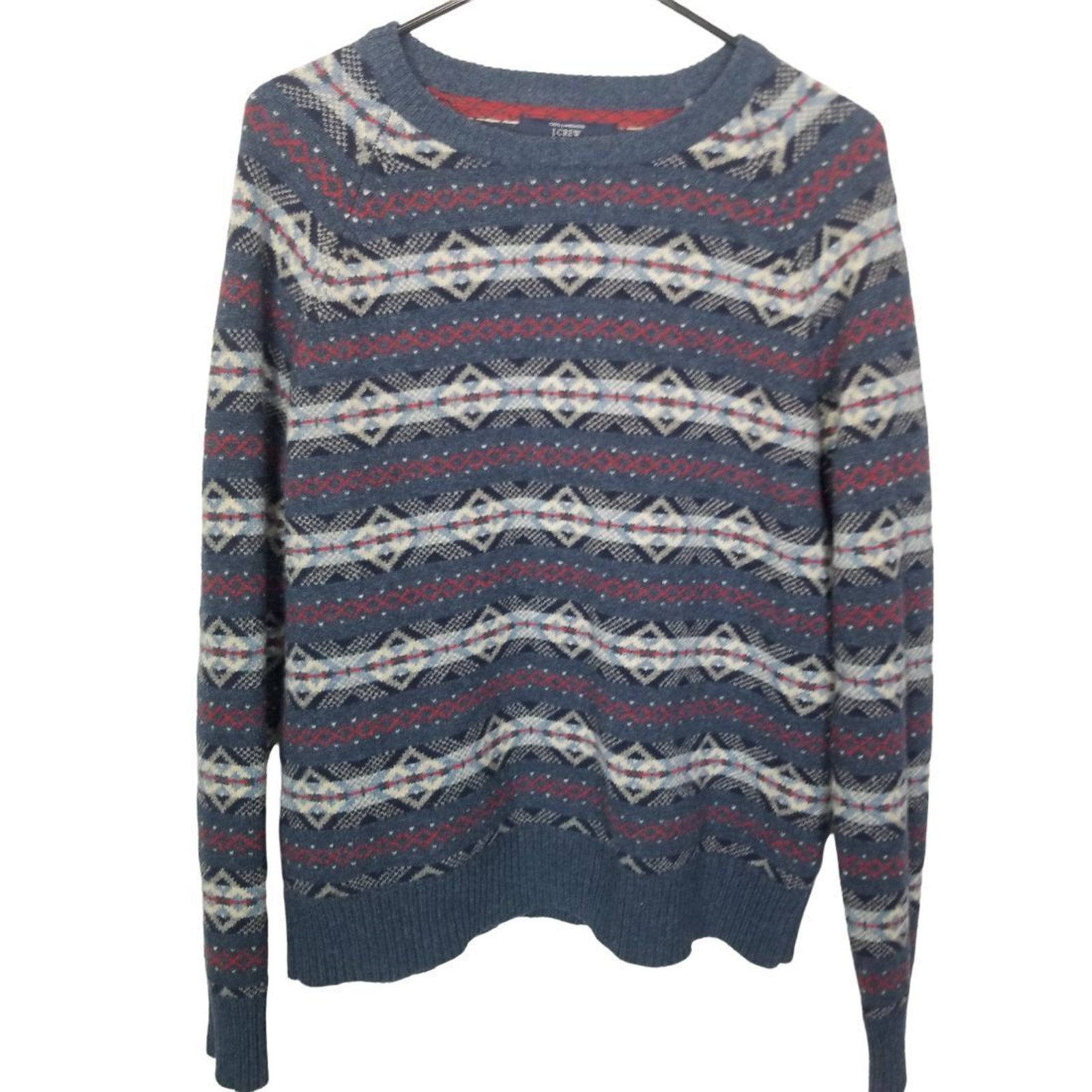J. Crew Mens Lambswool Fair Isle Pullover Sweater Size L Preppy Holiday Academia