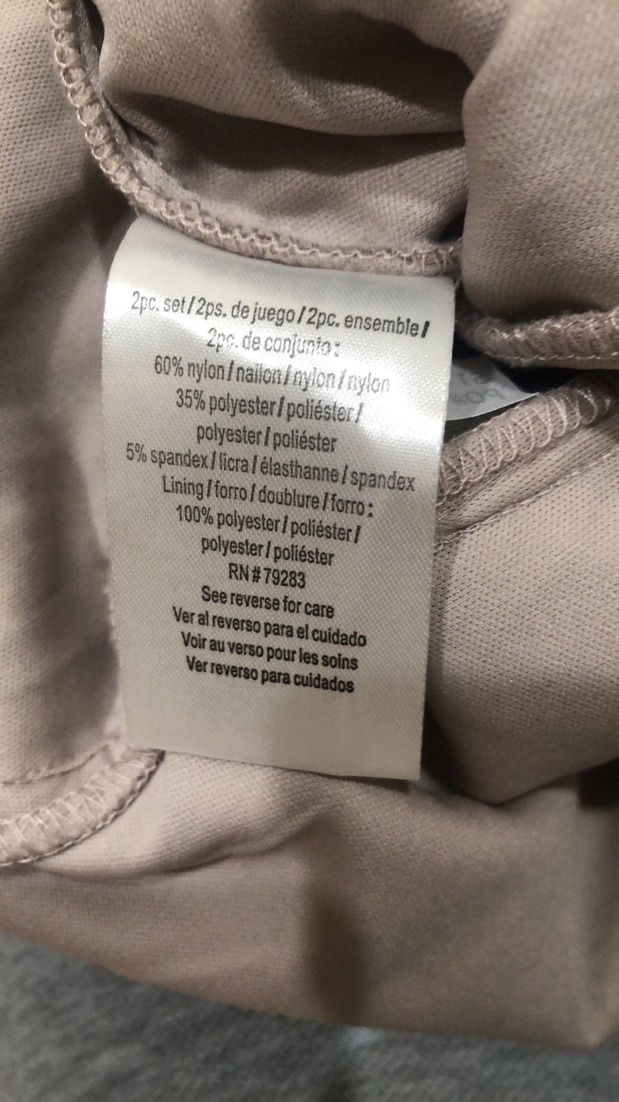 New with tag but missing the matching jacket. No other flaws. Sleeveless, scoop neck, sheath silhouette gown with no slits. Stretchy pull over style. Beige lace with sequins throughout.