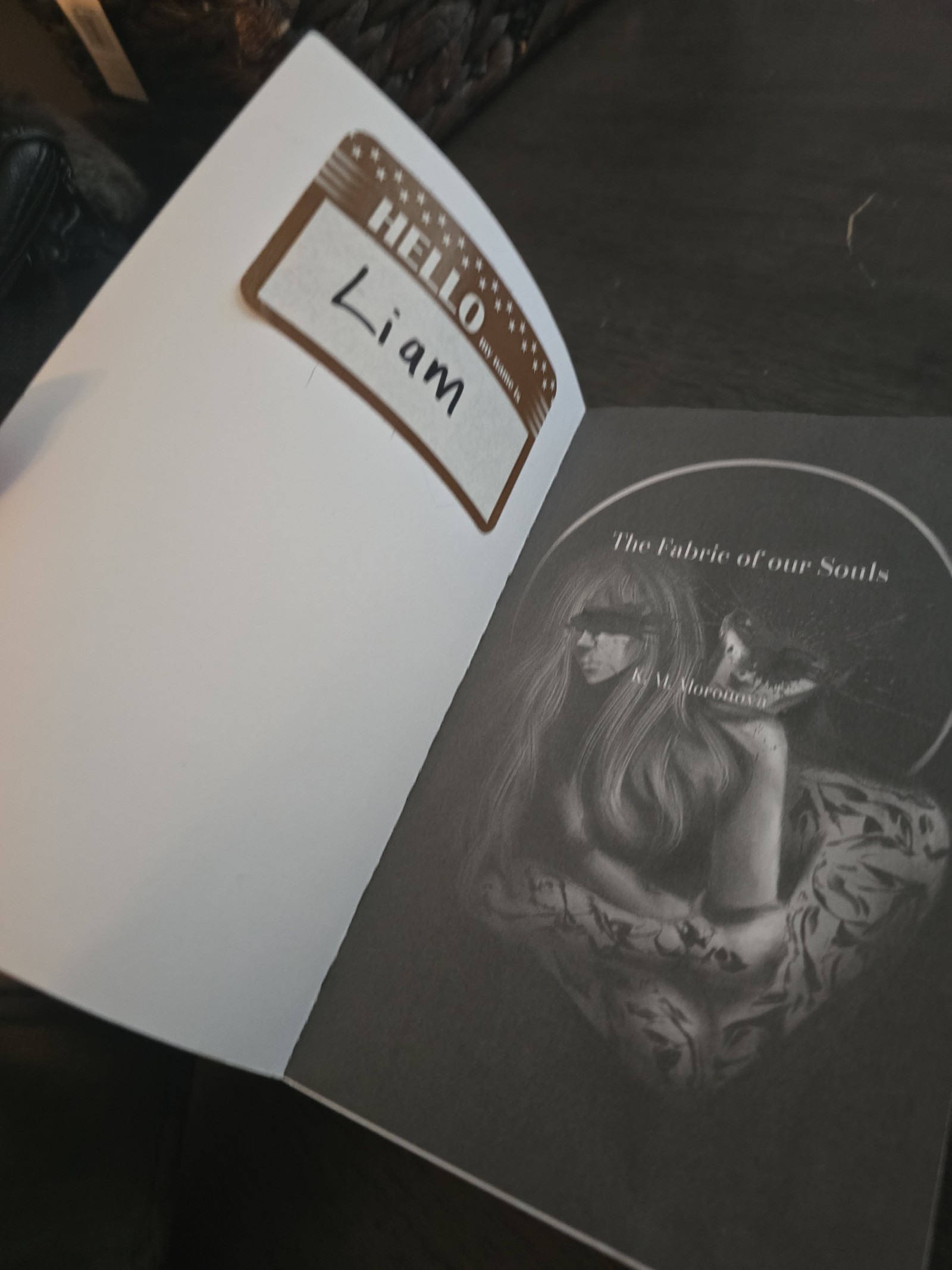 OOP The Fabric of Our Souls by K M Moronova original copy/this copy is read. Has bookclub sticker inside my name is Liam. See photos.