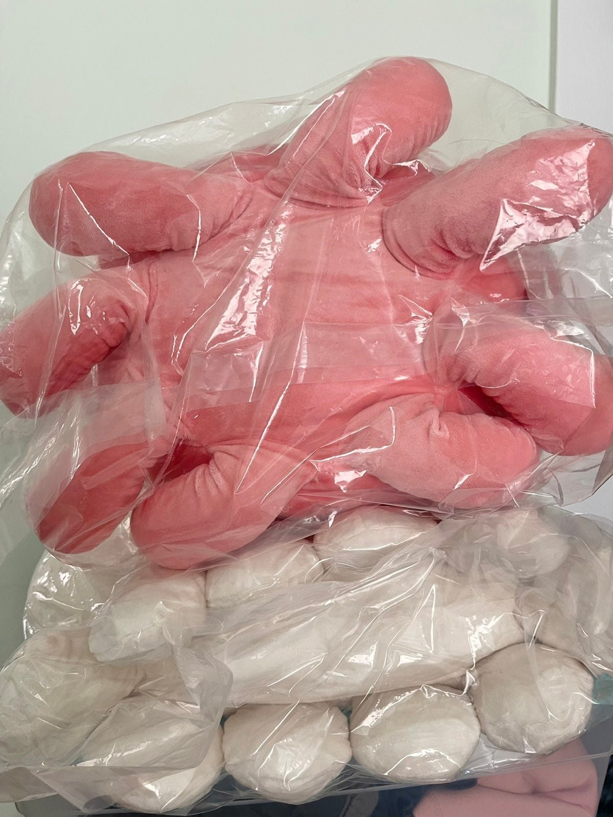 May come vacuum sealed and it will look squished because it came from Toreba Japan vacuum sealed. They are really heavy, about 3 pounds each! Once you open it, you should be able to fluff them back up to its normal round shape.